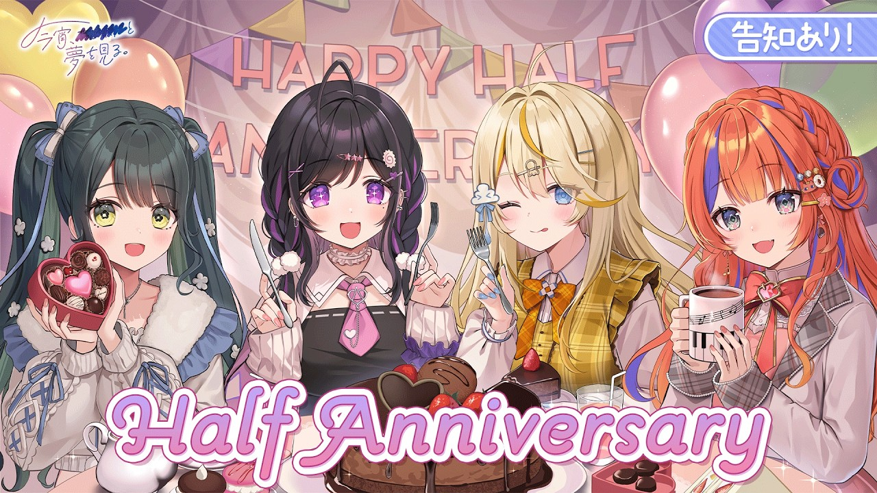 2026年2月、彼女たちが活動開始から半年を祝う「HalfAnniversaryパーティー」を開催しました! 十河ののはさん、夜牛詩乃さん、蝸堂みかるさん、猫屋敷美紅さんの4人が、種族の垣根を越えて共鳴する音楽。 配信の最後に放たれた、ファン待望の「重大告知」の衝撃と、彼女たちが描くこれからの夢。 2500文字の熱量で、この「祝祭の夜」を徹底レポートします!