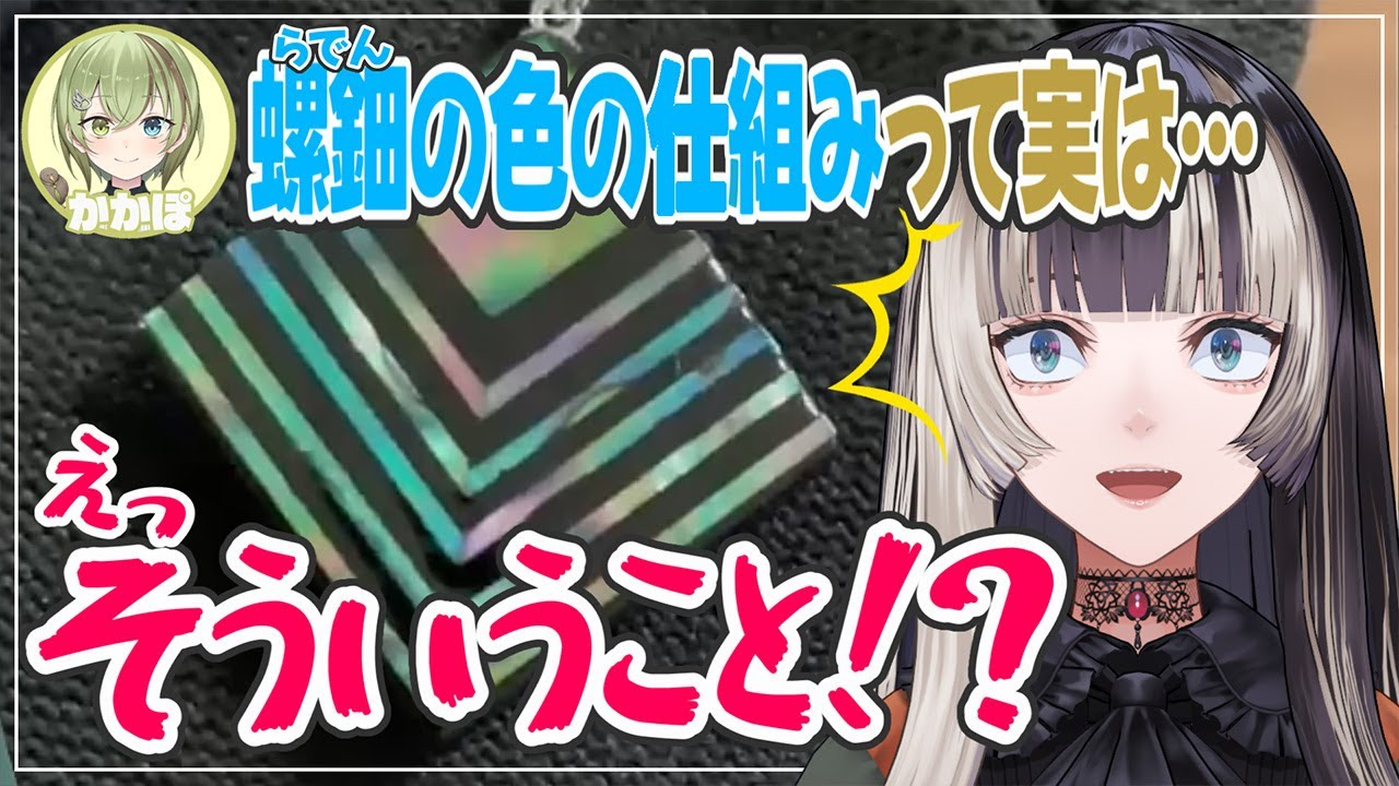 ホロライブファンの皆さん、知的好奇心旺盛な皆さん、こんにちは!今回は、美術を愛する落語家VTuber儒烏風亭らでんさんと、科学の楽しさを伝える北白川かかぽさんによる異色のコラボ企画「らぽラボ」をレポートします!テーマは、煌びやかな輝きが美しい伝統工芸「螺鈿(らでん)」。美術的な美しさの秘密と、それを支える科学的なメカニズム……。二人のプロフェッショナルが分かりやすく解説してくれる、まさに「学芸の扉をたたく」神回です!