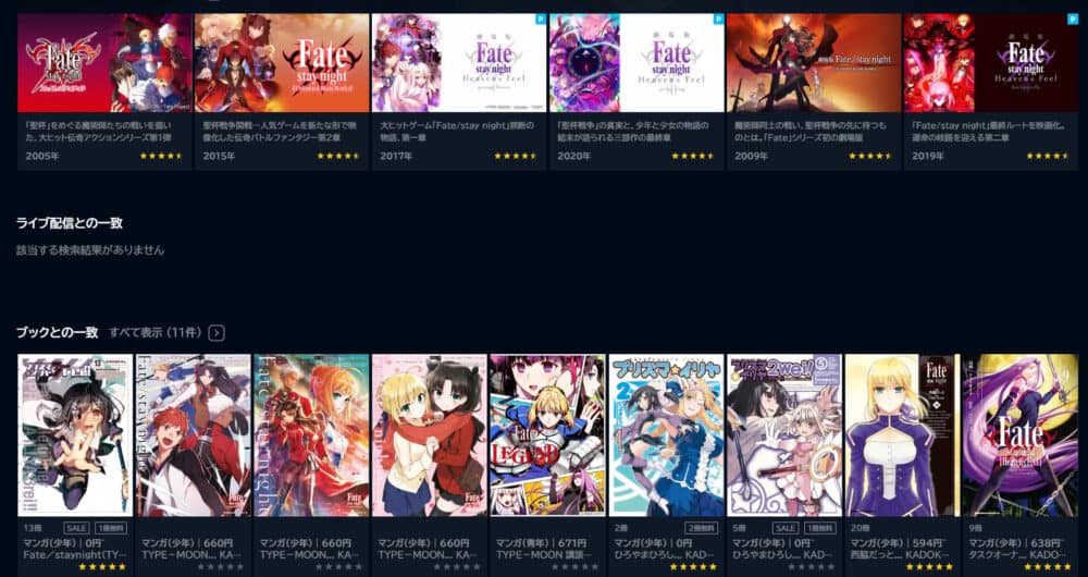 Fate(フェイト)は動画が多く、さらにはFGO・プリズマ☆イリヤ・カーニバルファンズム・スピンオフ作品などもあるので悩みどころです