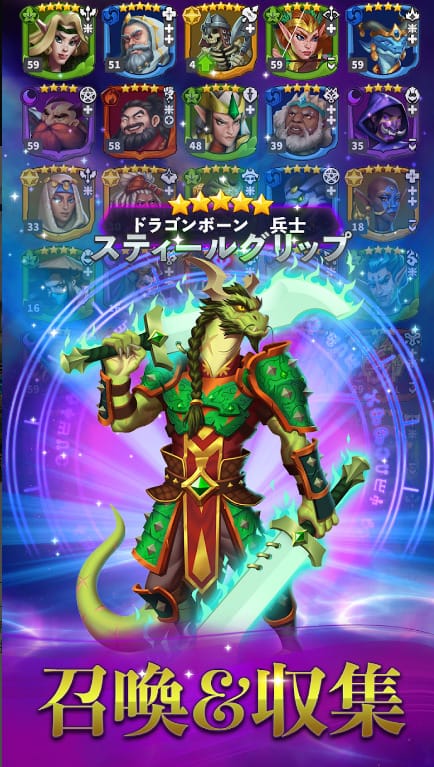 150体以上のキャラクターがおり、近距離・遠距離・回復役などでドラゴンを倒すRPGです