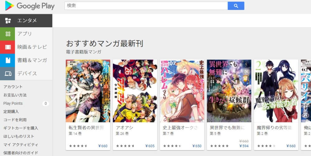 Google Play ストア簡単にコミックを変えます、無料や半額のセールが開催される事もありますので注意です。