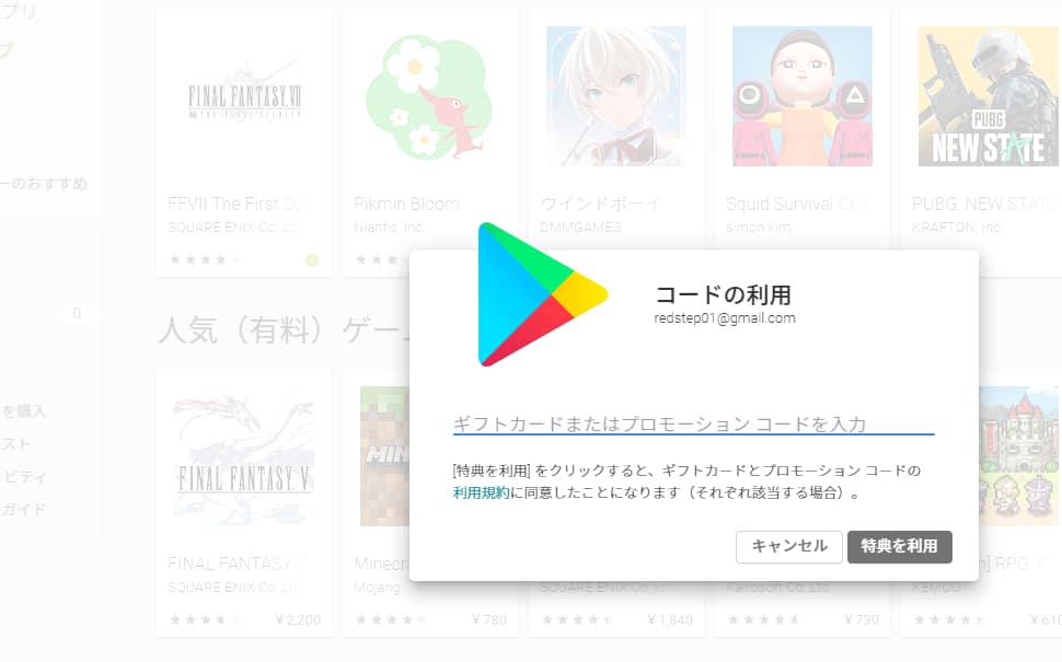 Google Play ギフトコード使い方!(スマホ・パソコン登録)