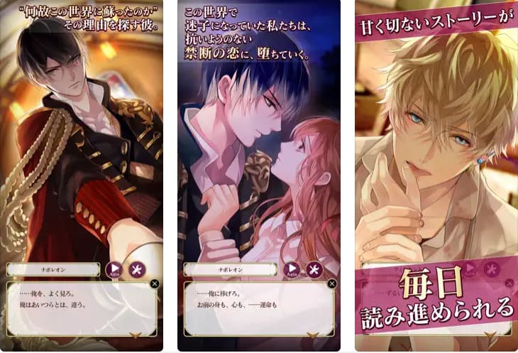 19世紀のパリにタイムスリップし、12人のイケメン偉人たちと禁断の恋に落ちるストーリーが楽しめます。イケメンキャラクター、ストーリー、ゲームシステムなど、あらゆる要素が最高レベルでまとまっている、女性なら誰もが楽しめる恋愛ゲームです。