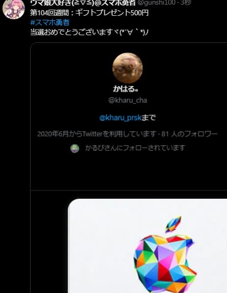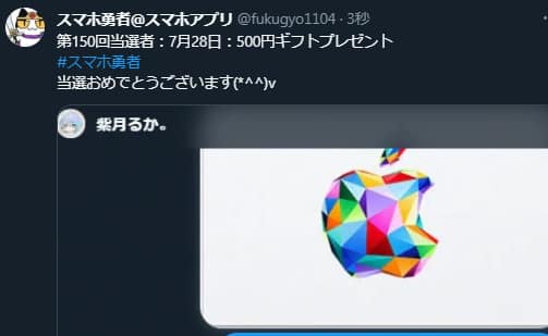 GooglePlay・appstore×ギフト券1500円プレゼント、 応募:フォロー&リツイートをお願いします。11月30日〆