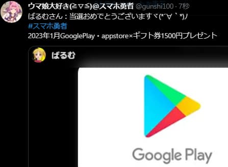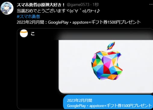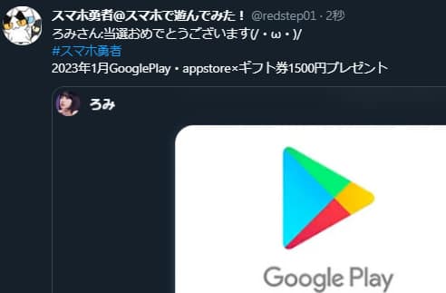 2023年1月GooglePlay・appstore×ギフト券1500円プレゼント