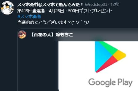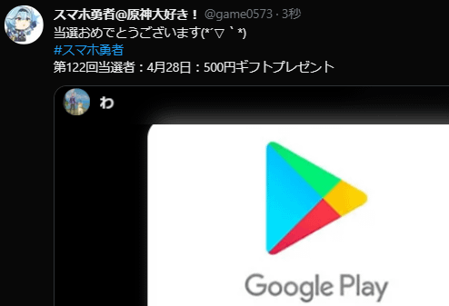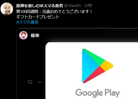 第100回週間:amazon・GooglePlayギフトプレゼント500円