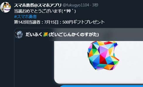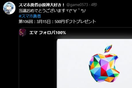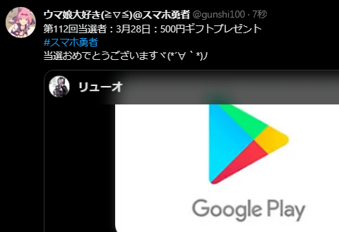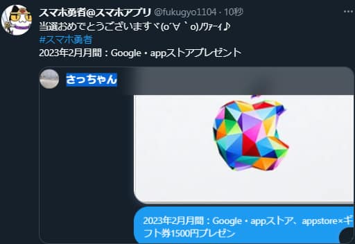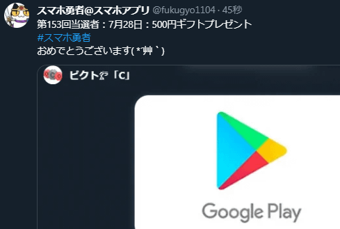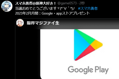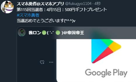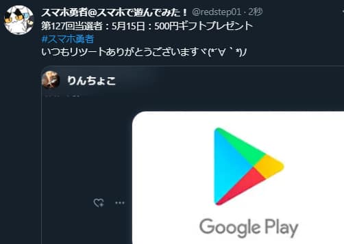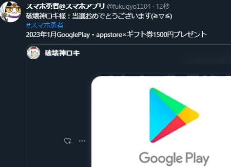 GooglePlay・appstore×ギフト券1500円プレゼント、 応募:フォロー&リツイートをお願いします。2月28日〆