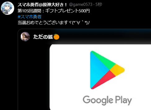 第105回週間:amazon・GooglePlayギフトプレゼント500円