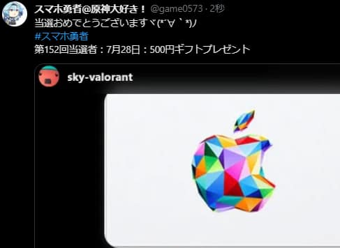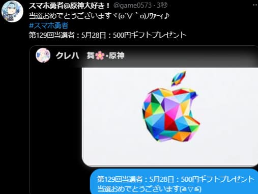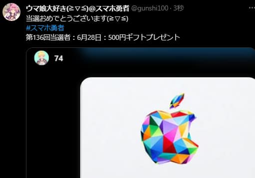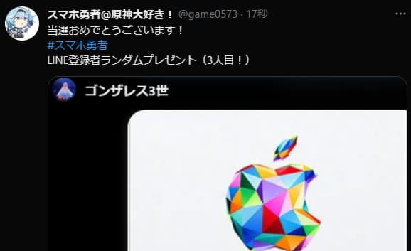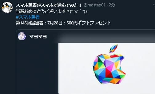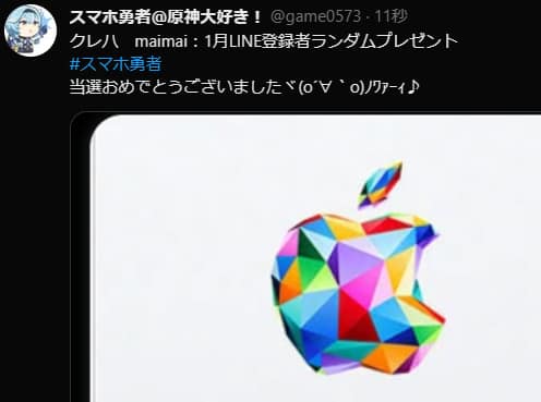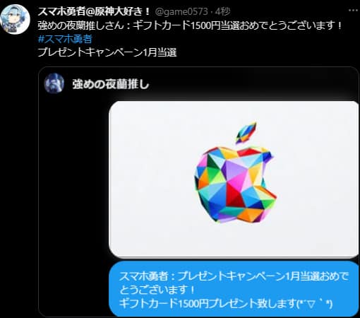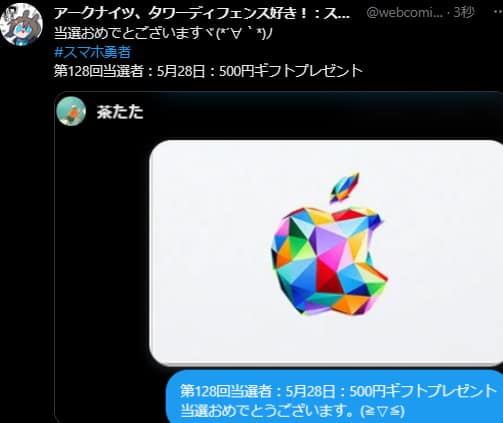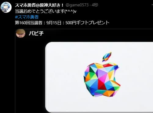 現在はこういう感じプレゼント中です、▶︎Amazonギフト券 ▶︎Appleギフトカード ▶︎GooglePlayカード
