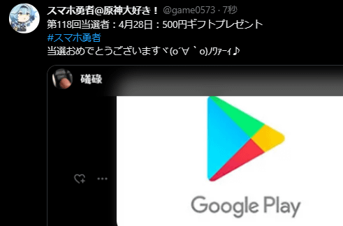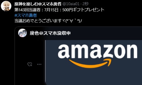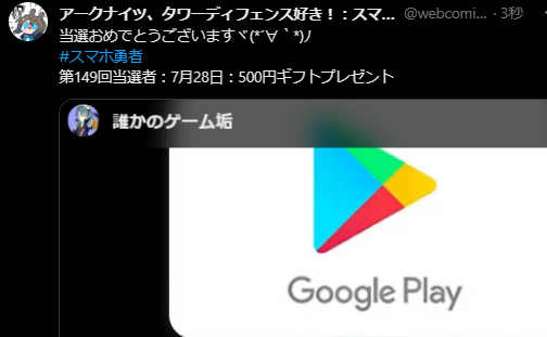 第104回週間:amazon・GooglePlayギフトプレゼント500円