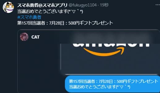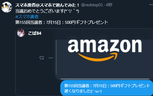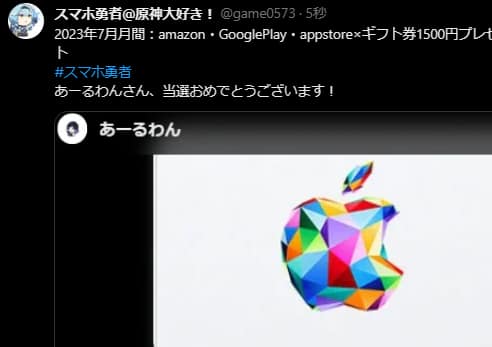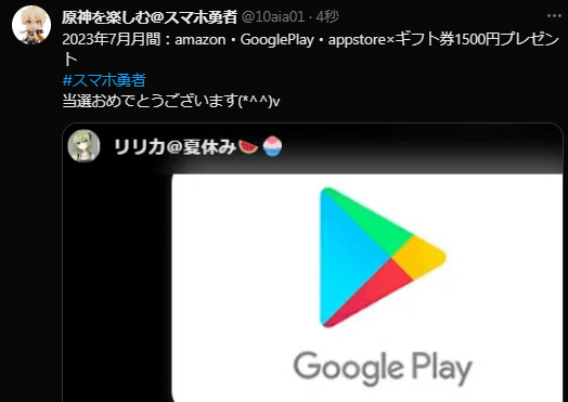 2023年7月月間:amazon・GooglePlay・appstore×ギフト券1500円プレゼント、 応募:フォロー&リツイートをお願いします。6月30日〆