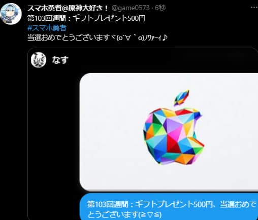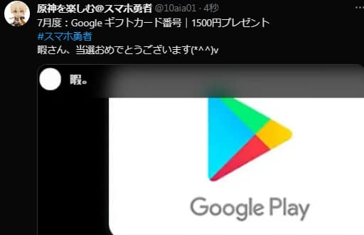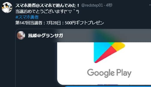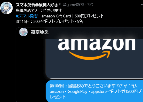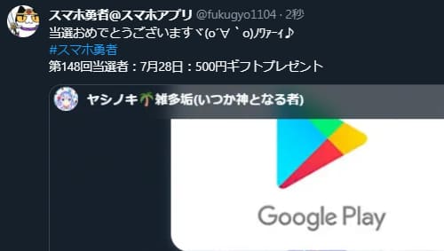 第103回週間:amazon・GooglePlayギフトプレゼント500円